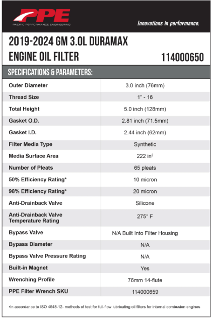 Pacific Performance Engineering PPE 2020-2026 GM 3.0L Duramax 2.7L L3B Turbomax MicroPure® Engine Oil Filter