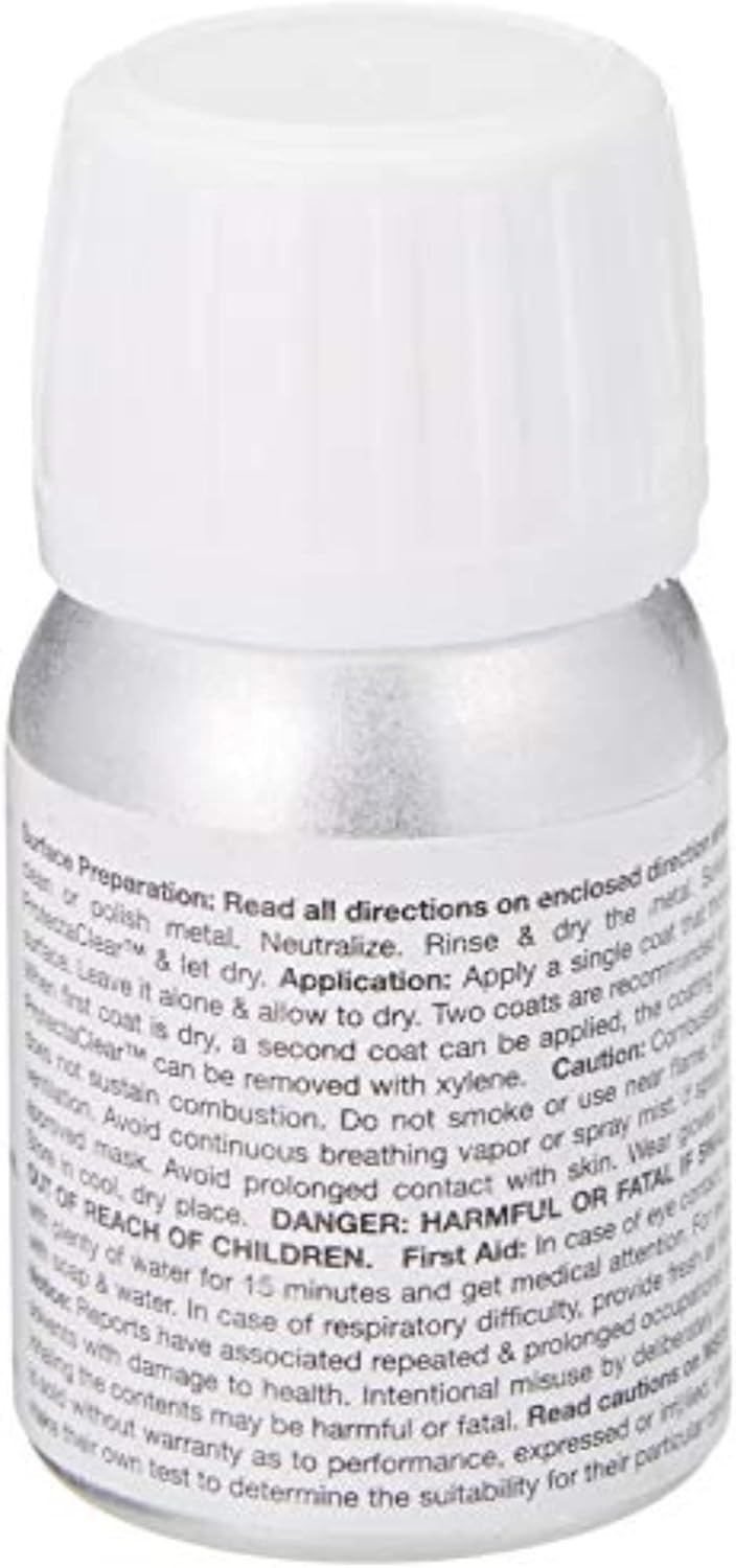 ProtectaClear is a practically invisible coating that will seal and protect metals in high use areas. Protect from tarnish, fading, wear, rust and more.Practically invisible so metals show through. Not thick or plastic looking.Tough and durable for excellent protection of high-use metals.Easy to Apply. Dip, spray, brush or wipe on. Brush marks will self-level.Makes authentic & costume jewelry hypoallergenic. Skin safe and safe for use around food.Stop teastaining, rust, corrosion and fingerprints on stainless steel.Stop tarnishing and oxidation on polished copper, brass, bronze, silver and more. Keep metal looking freshly polished.Will never yellow or discolor. Easy to maintain.