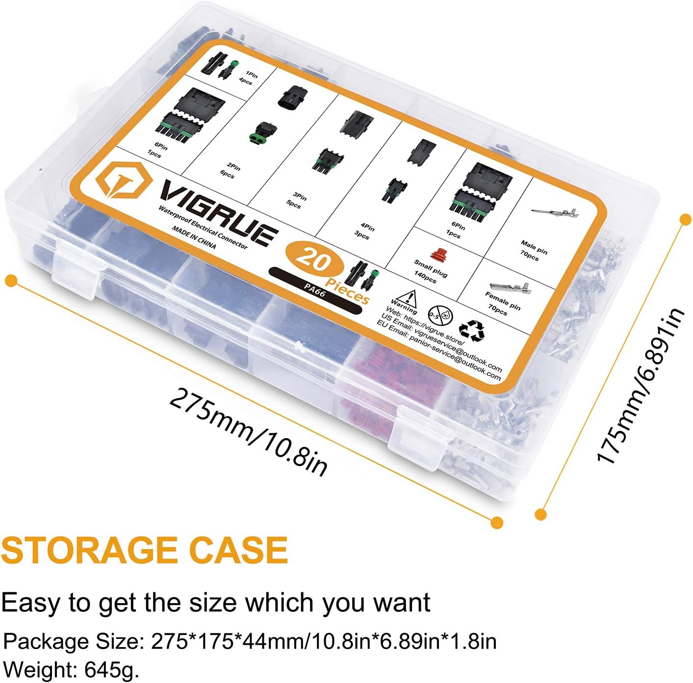 VIGRUE 301Pcs 20 Kits Waterproof Car Electrical Wire Connector Terminals Plug